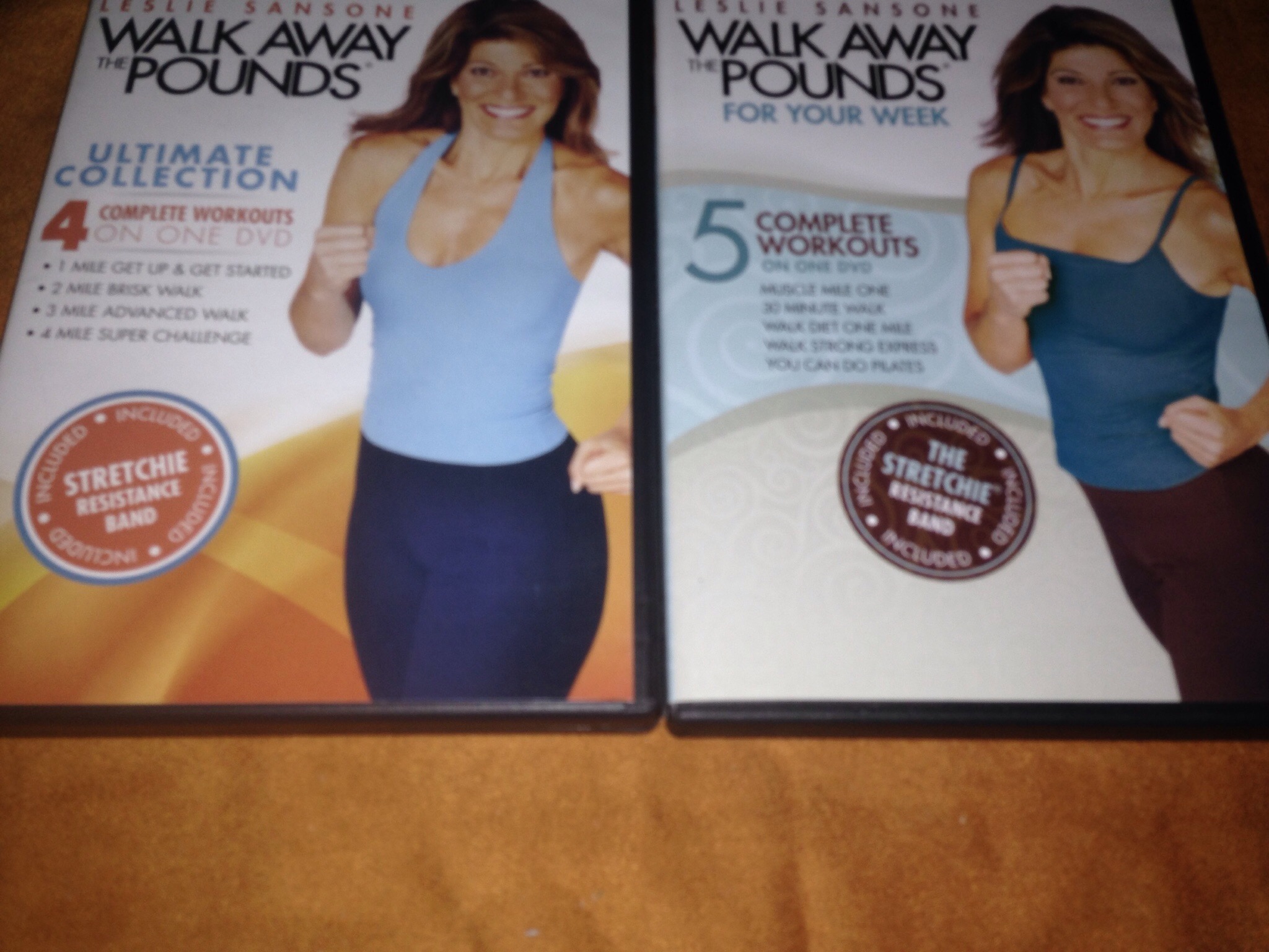 Next up a look at two more Leslie Workout DVD’S. Both were produced in 2009. First up is Walk Away The Pounds;The Ultimate Collection. There are 4 complete workouts.1. First we find the 1mile get up & get started Walk. A good basic walk to get you into the swing of things. Running time 18 minutes. 2. Walk 2 is the 2 mile brisk walk. You get 30 minutes of cardio followed by a targeted body -toning routine. Uses optional one pound weights . 3. Then move on to the 3 mile advanced walk. You get 45 minutes of intense fat burning and body sculpting and also stretching with the stretchie band.