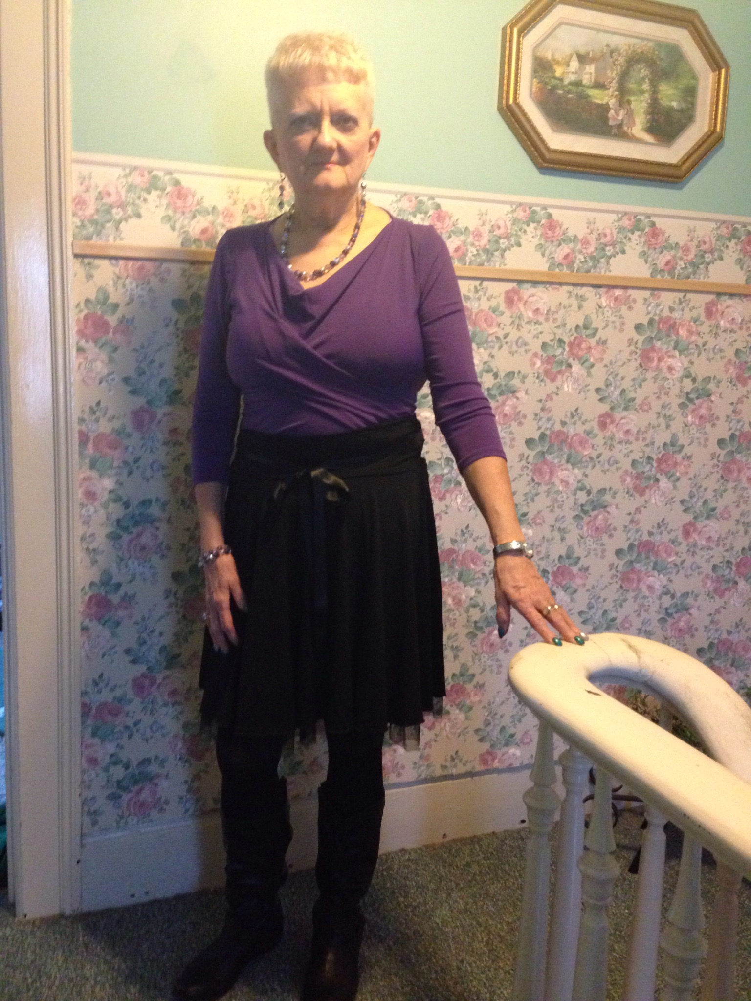 Guys I’m so exhausted tonight I am just going to make a small post and get to bed before I pass out. Exercise will have to wait until tomorrow night. Been burning the candle at both ends and today it has caught up to me. Hope you like tonight’s pic. The blouse is my favorite color. I had my eye injection today and it is more sore and irritated than last time. Guess my whole body is just saying sleep. I’ll have to get up early and get the dishes I have to prepare for at my son’s, started. I lost the recipe I was going to share with you somehow, but I found another one I will do tomorrow. So just remember to enjoy tomorrow. One day off track won’t kill any of us. If you can fit in some exercise , do that . I will have to , because I have to get some rest tonight. I hope everyone has a Blessed Thanksgiving and a great time with friends & family . Count your blessings and thank the Lord for everything good in your life. I’ll be back tomorrow night with more to share. Again God Bless. See you next time.