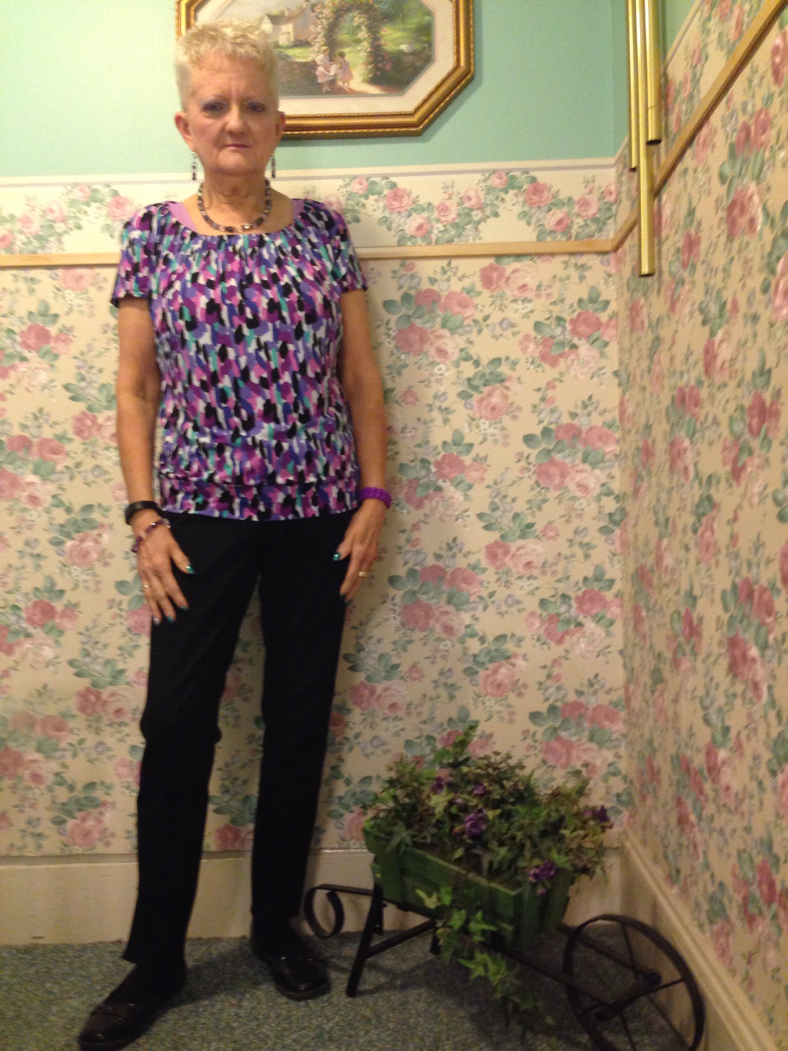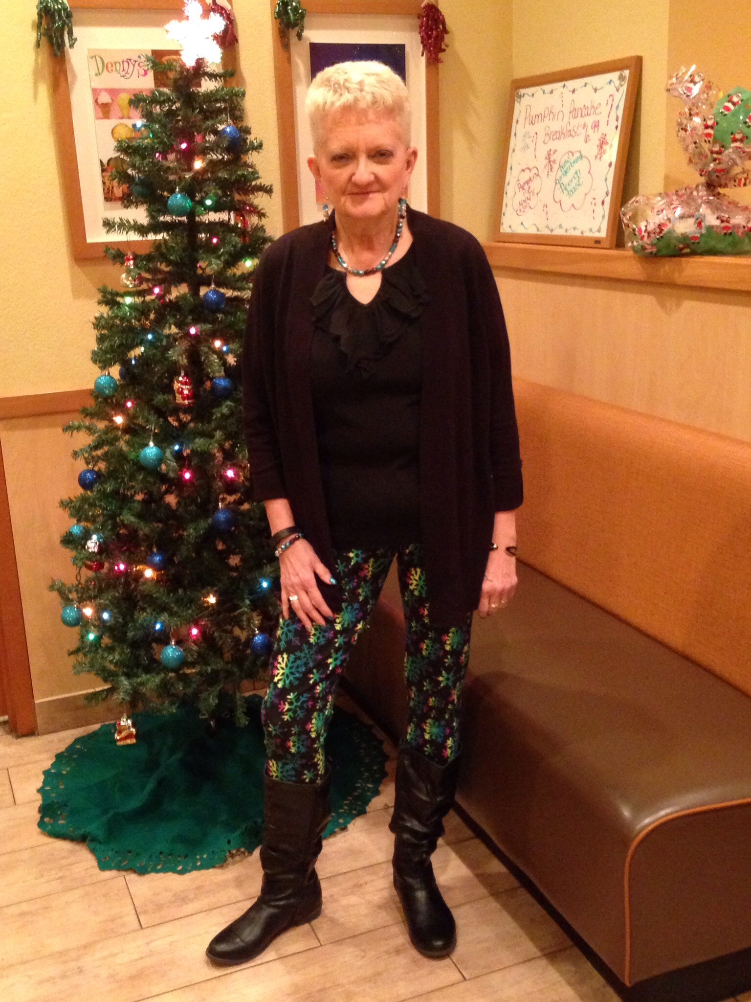 Well here we are again for a new edition of Carol’s Corner. Hope everyone survived the weekend. As you know from yesterday , I was at the brink of total exhaustion . I went to bed and didn’t get up till 4:30 this afternoon. I guess that says it all. Today’s pic, shows the last of my thrift store purchases of a few weeks ago. Again totally love the colors. I don’t know how , but I managed to get my steps in today , even after my late start. The last 100-200, had to jog around upstairs where I was cleaning and taking down the fall decorations , to hit it by midnight. I just had to make it. My workout will come after I get this blog done. I really love my Fitbit. Sure glad I made it known I wanted one. Now , I’m writing my blog at Denny’s. Still have to clean downstairs at the house , but here I can sit by myself and think., with no mess around me. Having my second meal of the day which I hope to work off after I clean . That brings me to my second picture which I’ll explain after I put it up.