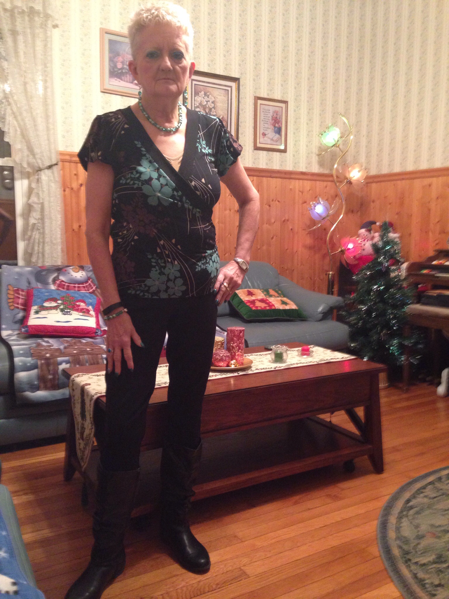 Welcome to my own little spot in cyberspace, the one that I like to call Carol’s Corner. Here I hope you’ll find useful information, motivation , inspiration ; all of the many things you need to begin or continue on your journey toward reasonable weight loss, and better health & fitness. Whatever your goals are , I want to help you reach them . Together we can each be the best we can be. So let’s get started. Today I decided for my first pic to let you see, what I like to call the unglamorous me. This is me after I came home from spending five hours putting my blog together. I immediately changed and put on my workout clothes , which is pretty easy. The top is the cami shaper I had already worn under my clothes. I always use them as part of my workout gear. I own every color they make and two each of black and white. Love them. Then I just have to slip on whatever workout pant I decide to use and my Easy Spirit Walking shoes. So this is the me before I get all gussied up. My body still isn’t perfect , but for an almost 64 year old senior citizen it ain’t half bad (and yes I know that’s not proper English, I just like the way that sounds). So I did a two mile workout before heading off to bed, finally at almost ten in the morning. I’ll post the picture of what I looked like after getting ready to leave the house , later in the blog. So let’s try continue our exploration into what it takes to lose weight. Before you decide what kind of diet or food plan you need to pursue , you should first find out what is a reasonable and healthy weight for someone of your age and body type. Your doctor should probably be your first source of information in deciding this crucial piece of your journey. You can always make changes to your final goal along the way. I actually went between 13-15 pounds less than the original goal I had set for myself. As I like to tell people , you’ll know what it is when you get there. I instinctively knew when I had arrived at the perfect weight for me. I remember the day when I looked in the mirror, and said ” This is what I want to look like the rest of my life “. And this time I DO MEAN the rest of my life. Any other option is not acceptable. So talk to your doctor or any other source that can help you, to decide on a healthy & reasonable weight loss goal for yourself . Now it’s time to get started. You need to decide what kind of food plan you need to follow to get you started on your journey. Keep in mind you have to burn 3,500 more calories than you take in, to equal one pound of weigh loss. And then you have to decide what you would like to lose each week , and of course that will vary depending on a variety of factors. Just remember there is no magic bullet or pill that can do this for you. You alone are responsible for your failures or successes along the way. So get ready to do the hard work , and make the hard choices necessary to insure success on YOUR journey. It is your journey alone. You make it what it is. Remember that as the days, weeks, or months go by. So you’ve set a couple of goals , and now you have to decide on some kind of eating plan you will need to follow to get to the top of the hill and claim your prize ( A healthy weight & a healthy and fit body). What you finally decide on , may have to include any health issues that might come into play , such as Diabetes Or Chloresterol issues. These two, happened to be mine. YOU have to decide what will work best for you, and you may just have to revise things along the way . Nothing in this journey is ever set in stone. You have to be flexible and willing to change course when things just aren’t working for you. Each of us is unique and what works for me might not work for you. So take some time, do some research, talk to other people who are going through the same thing as you. Maybe you’re already started on this journey and don’t like how things are going. This is a good time to stop and reassess your food plan & your diet strategies. Decide what is working for you and what isn’t. Evaluate your own actions. Are you sticking to your plan? Are you putting in the work that is needed to insure success? Are you making the proper choices? Those are all things you need to ask yourself and answer honestly. So wherever you find yourself,, take some time and think over the things that we discussed here and meet me back here, as we delve deeper into the subject of what it takes to lose weight. Now onto some more pictures. The first , will be that second one I promised you, dressed and out of my workout clothes and a view in my living room.