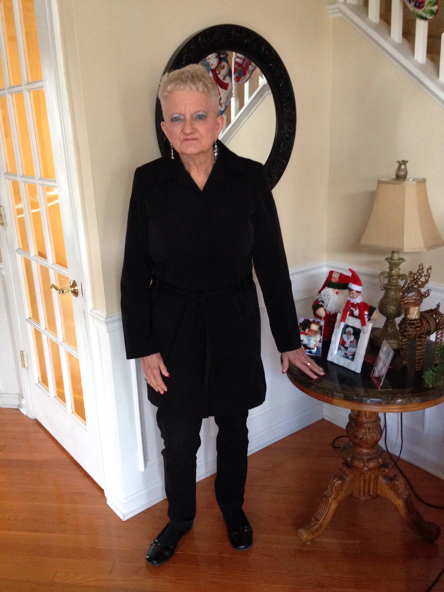 Well here I am ready for the last day at my daughter’s in Pa. Thought we were staying till early evening, but we left around 2:30 after lunch and after I got packed , which is a story unto itself. My husband is an Amsoil Dealer and he usually put’s in an order which he picks up at the warehouse. Well he had so much , my suitcase had to stay there till next time. Had to put everything in bags. The car was packed to the hilt and you couldn’t even see out the back window. Good thing I didn’t go shopping this time. But now home, all unpacked, cleaned up, did laundry, and worked out. Now to get another issue of Carol’s Corner in the bag. The picture I’m putting up next is me wearing my daughter’s coat. In a million years I bet she never thought I’d be fitting in HER clothes. It was fifty there today, so she gave me this to wear instead of my winter coat. The first day we were there, I wore her long workout pants and a jacket , when I did a two mile walk, on the walking trail they have in their development. It boggles my mind that I can wear some of her clothes. She wears a smaller pants size , and I weigh a little less than her now, but we are totally different body types. I think I look pretty good in her coat.
