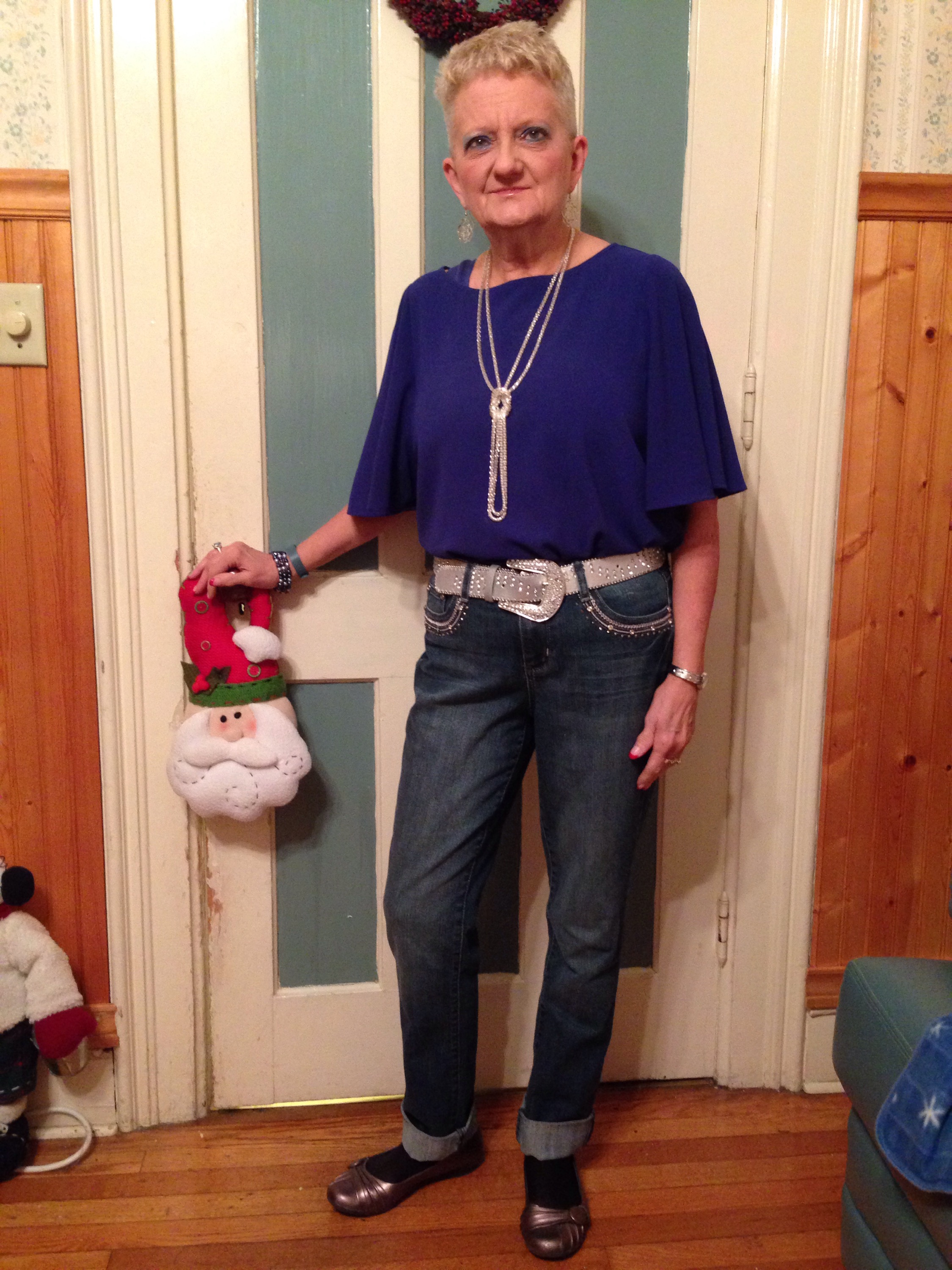 Welcome back. Hope you enjoy your time here at Carol’s Corner and feel that it is time well spent. Today’s pic came out pretty good , considering I didn’t wash my hair today, just touched it up with some product. Too bad you can’t see the back of these jeans. They’re beautiful, of course by now you can probably tell I like the bling. Now today, in case there are new reader’s that haven’t seen me before I started my journey , gonna post the one picture I could find at my heaviest ( and even that one is about 10 lbs. below my heaviest weight) , and then a couple of me since I lost 54-58lbs.