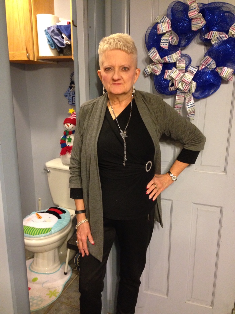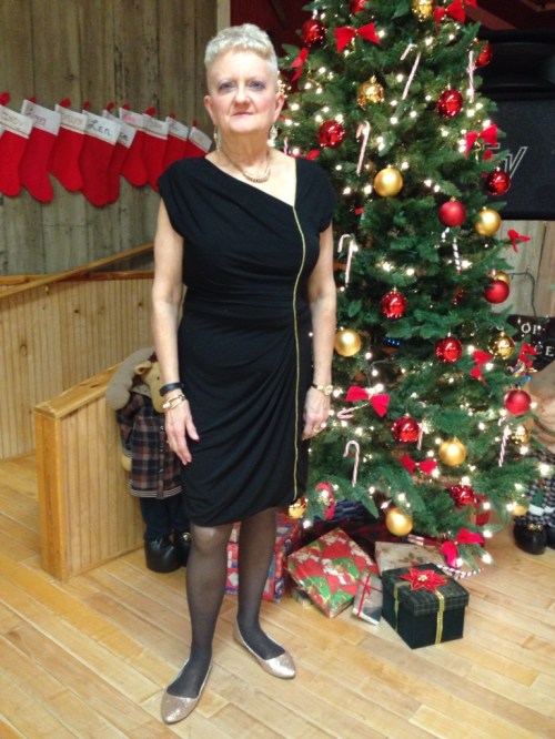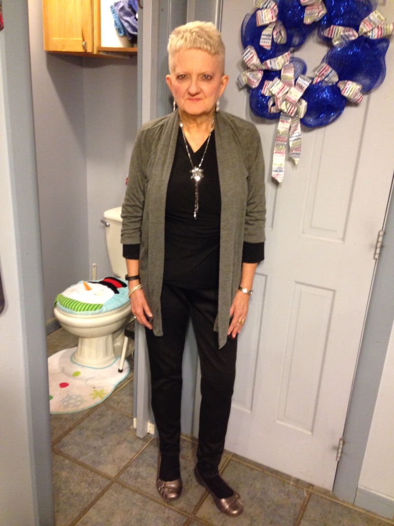 Welcome to the first blog post of Carol’s Corner in our brand new year, 2015. Let’s raise a collective glass to making 2015 the best and most successful year ever. I spent my New Year’s Eve dancing the night away. I’ll put my picture toward’s the end of this post, for those who might not have seen it already. Today’s picture is all about layering our looks. The winter season is well underway now, and dressing for it is always important. I don’t like to wear sweaters every minute, but always have to be prepared for when I am somewhere that just isn’t warm enough . My look for today is kind of fun and looks good either as a total look , or by removing the top layer and revealing a whole new look. And since I had this lightweight gray topper , I decided to go with my gun metal flats and this cool long necklace , silver earrings and bracelet. Love the whole outfit. On a funny note, hubby wanted to frame this picture to show a peek into the powder room and it’s Christmas look , and since he isn’t big into decorations like I am, I found it to be amusing . Guess he’s thinking about my blog readers. He does support me in this endeavor, and knows how important it is to me. So now let’s see what all we can come up with for this edition of Carol’s Corner. The first thing I’m going to do is link you to an interesting read I came across on how to manage three hormones that can affect weight loss. Never know when something like this could be helpful to someone here, and it sure could’t hurt to check it out. So here it is. http://www.foxnews.com/health/2014/12/30/how-to-manage-3-hormones-that-can-influence-weight-loss/. Let me know what you think about it. Loving that I found how to create links here on my blog. Glad I came across the Blogsy blogging app for I Pad , for use in publishing to WordPress. Still more to learn when time permits. I think I can even post video’s when I have time to figure that out. Think I’m going to use the rest of our time here today on breakfast, the importance of it, and breakfast ideas for you to use. First I am going to link you to some materials on Web Md and the importance of breakfast and weight loss. There are many other useful links right there to explore. http://www.webmd.com/diet/features/lose-weight-eat-breakfast . The next thing I’m going to use is some material from an article on the seven secrets of the perfect weight loss breakfast. I’ll do a little overview and then link you to it, so you can read more about each one. You’ll also be able to go to other links right from there. The first secret is to keep it balanced. A great breakfast includes a serving of protein, a serving of fruit, and a serving of whole grain carbs. Secret 2. Consider switching from coffee to green tea. Secret 3. Choose homemade granola over store bought. Secret 4. Aim for at least 5 five grams of fiber each morning. Secret 5. Decorate some plain yogurt. (Yogurt lovers will like this one) Secret 6. Skip the latte. And secret 7. Forget breakfast foods. Here’s the link to the start of this article. http://www.besthealthmag.ca/best-eats/diet/7-secrets-of-the-perfect-weight-loss-breakfast. Now let’s talk about five healthy breakfast foods for weight loss. Again I’ll give an overview and link you to the site where there is much more to explore. The first healthy breakfast food is one I actually love: raspberries (yummy). A cup of raspberries has a whopping 8 grams of fiber, double that of strawberries, and about the same as a cup of some type of beans. Read the study in the link I will provide at the end of the overview , about fiber. Food 2. Oatmeal. This is one I personally don’t like but many people love it. Too bad I don’t like it. Two benefits are: It is loaded with fiber and helps keep you feeling fuller longer, both a big plus. Food 3. Yogurt, funny another thing I don’t really like, can eat it in small amounts, but don’t love it. You can read why it’s a good breakfast food in the link. Food 4. Peanut Butter. Now this one I love, just can’t overeat it for two different health reasons. In our house we use Smuckers Natural, the kind you have to mix. It does have the least amount of sugar grams, which is a plus for me. I usually have it toasted , on a piece of nine grain bread with my Earth Balance Butter Replacement and then the Peanut Butter. One slice would be an ok breakfast for my blood sugar. Food number 5. Eggs. Eggs provide protein, which keeps you satisfied longer. An interesting study showed that dieters who ate eggs for breakfast, felt fuller longer and lost twice as much weight as those who ate the same amount of calories from a bagel. Here’s the link to the full site. http://www.eatingwell.com/nutrition_health/nutrition_news_information/healthy_breakfast_foods_for_weight_loss. I’m going to end today’s segment with a link to another great read on what to eat for breakfast if you want to lose weight . Lots of great information here and in the other links. Hope you find lots of things that will help you personally in your continued journey, a journey not just for today or tomorrow, but one for a lifetime. http://www.caloriesecrets.net/what-to-eat-for-breakfast-if-you-want-to-lose-weight/ As usual I would appreciate your feedback, either positive or negative. I do all of this to benefit you, the best way I know how. So let’s all start out 2015 , using every tool at our disposal to make it a rip roaring success. And don’t forget to get out there and get moving. As Leslie would say: walk, walk, walk, walk. Till next time God Bless. Oh the picture I promised you.