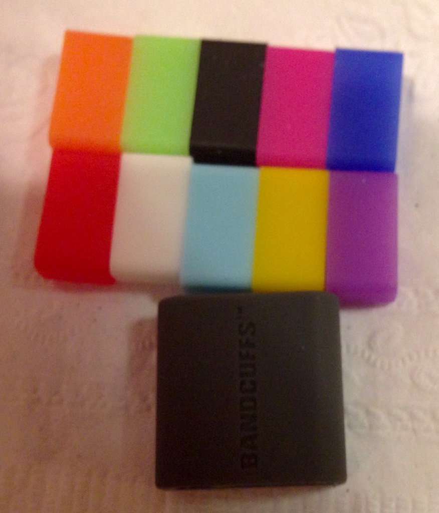 Next up, the dark gray BandCuff and this set of 10 mini ones . I bought these specifically for a couple of the colors. As you can see from the picture, two of the mini ones approximately equals the size of a larger one. Mix and match with the bands for a variety of looks.