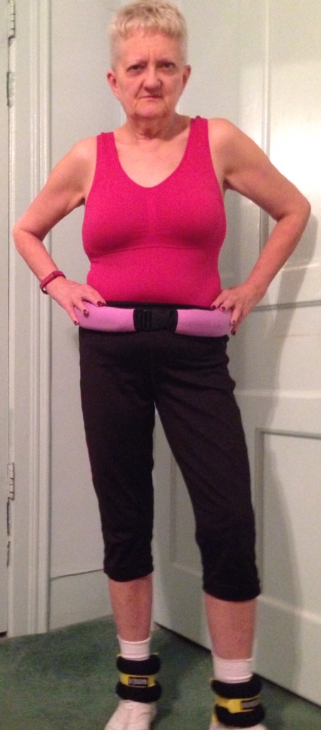 The next picture will be my workout wear with my 2 lb ankle weights and my 2 lb. weighted belt. I did the 4 Really Big Miles wearing both weighted items.