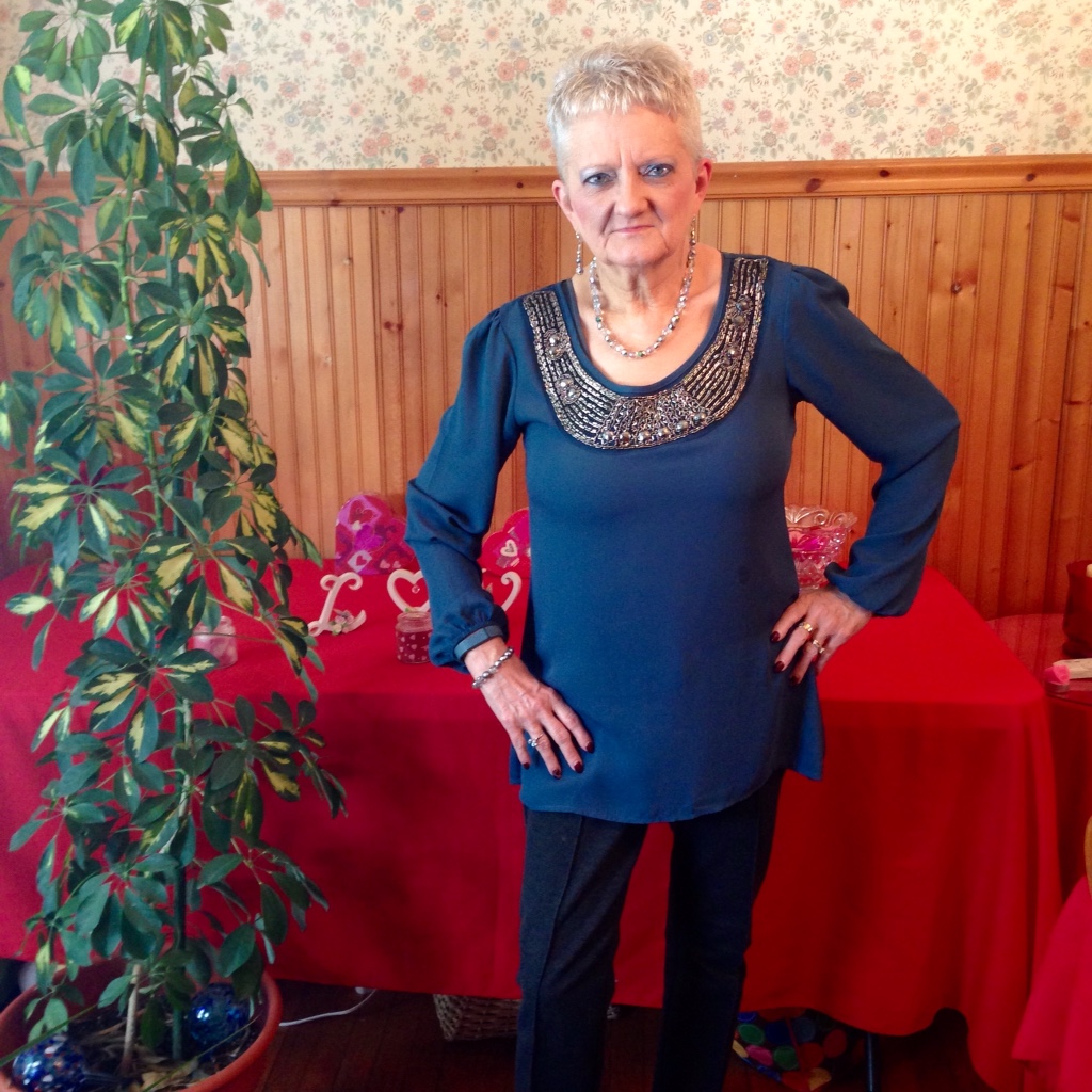 Welcome back to my little corner in cyberspace. I hope you are blessed by what you find here when you stop by. If there is anything you want to see me talk about, please leave me a message in the comment section and I will see what I can come up with. I am committed to helping as many people as I am able, as they go on their own journey to health and fitness. In today’s picture I’m wearing a blouse that’s been in my closet for awhile, but just hadn’t worn it yet. I love the bling and how it flows. The back is cool too.