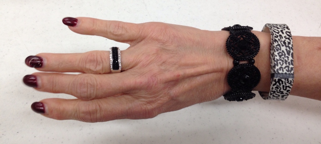 Here is My FitBit band , along with what people call my Oreo Cookie bracelet. Love this ring that I got on sale when I was at my daughter’s in Pa.