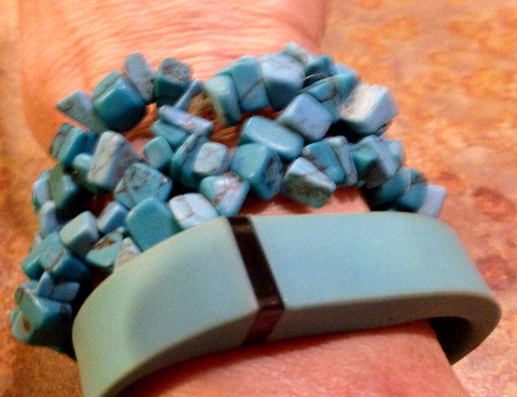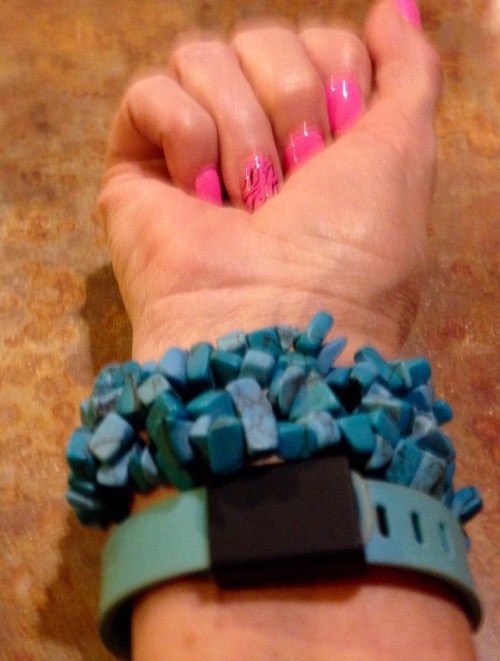 My Fitbit accessories and this turquoise nugget bracelet that everyone seems to like. The last picture is in my workout gear right before my second workout of the day. I like to show people that I am not always dressed up. This time though my makeup and hair were done, because I had already been out earlier that day.
