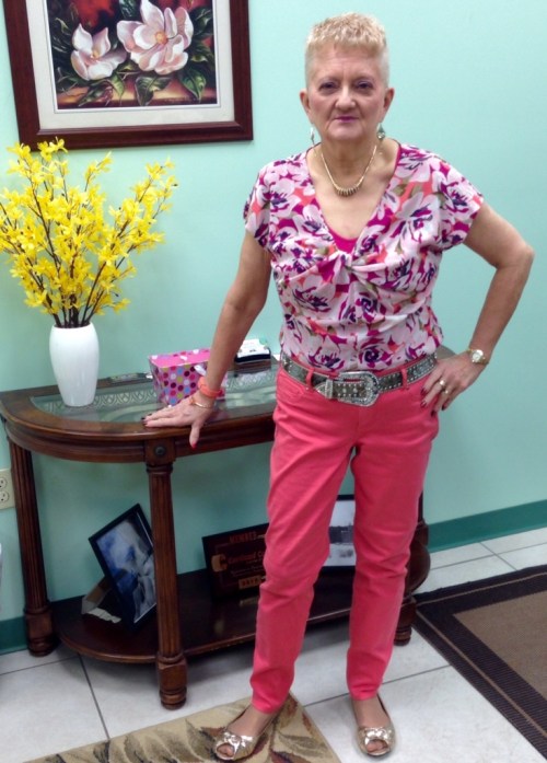 Again I was able to combine the two hues together. Decided to go with gold accessories today to be able to wear this beautiful bracelet I got from my daughter. It's part of my Mother's Day gift. Got this one early. It's neat that it picked up both hues from my blouse and pants, along with my FitBit combo and my ring.