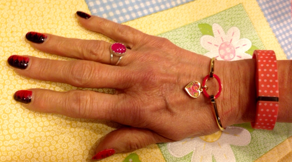 Again I was able to combine the two hues together. Decided to go with gold accessories today to be able to wear this beautiful bracelet I got from my daughter. It's part of my Mother's Day gift. Got this one early. It's neat that it picked up both hues from my blouse and pants, along with my FitBit combo and my ring.