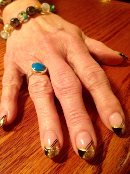 This is my amazing manicure I got today. It’s going to be incredible when you see it with the dress and accessories I am wearing for the wedding. I can’t wait for you to see the pictures. I literally had to beg hubby to let me get it a week earlier, but it was worth it. Now I have to work off some of that dinner and get some sleep. Meanwhile I would appreciate hearing from some of you with some feedback for me and some new blog suggestions. Sometimes my brain is just mush. And I like to know how you think I’m doing and how I can further help you.