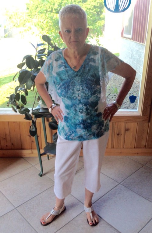Hello to all my friends and readers out in the blogosphere. Was another gorgeous day in Central New York. It’s been a really nice week so far. Speaking of weather, let’s pray for the people in Texas and Oklahoma who are in harms way from the flooding and tornados that have plagued that area this week. So today my outfit says summer all the way. First time this season wearing white. We’re calling this “Flower Power, Vibrant Color, Glorious Blooms”.