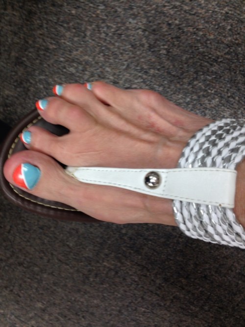 Thought I would include a picture tonight of my matching pedicure. I usually don’t get them done at the same time, but this last time I did , so I told my nail tech to make them matching.