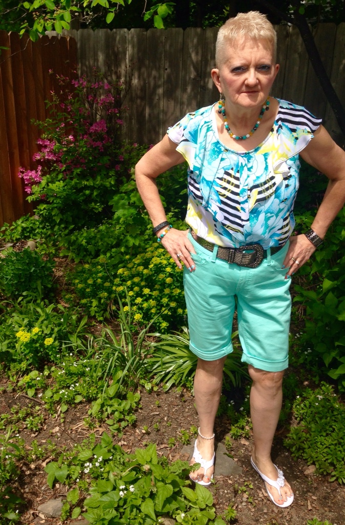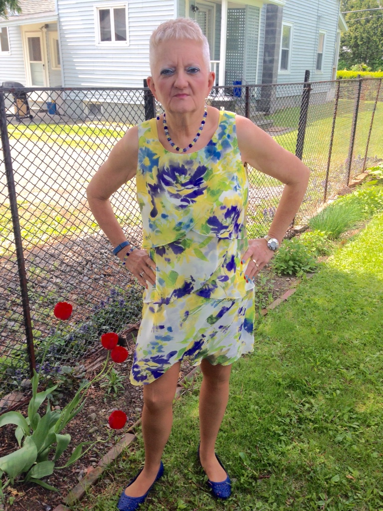 Welcome to Carol's Corner on Memorial Day weekend here in the USA. Was quite a beautiful day today, not too hot, not too cold. Gonna have a bunch of picture's before we get started on today's topic. This is one of my favorite summer dresses. The color combo is just divine . The style is just flirty and fun and totally feminine. I call this “Color In Motion”, because of the way the dress and tiers move as you walk.