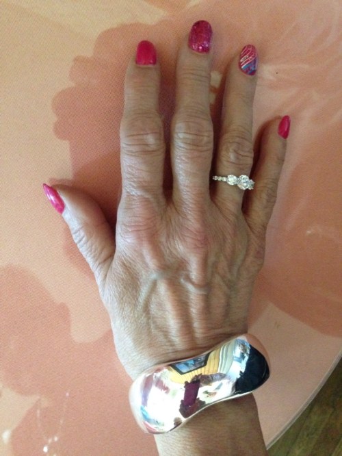 That brings us to January 2014. Laura saw a blurb as she puts it, on Leslie Sansone’s Facebook page, saying they were looking for stories from folks to be featured in an infomercial. Well it ended up that Laura was one of 25 chosen out of 500,so she felt greatly honored. In March of 2014, she went to New York City for the filming . They paid for her airfare, her hotel room, her taxi fares and her meals. Here are a few pictures of Laura getting ready for her spot. They sent here these to have , and she is actually going to be wearing a different dress in the actual infomercial, which should be coming out soon.