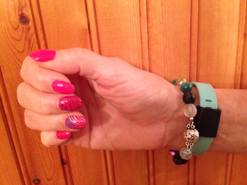 With my jewelry and my FitBit combo I was able to bring in the subtle color tones in the blouse. One of the perks about being able to make your own jewelry is that you can match things to your outfits probably 99% of the time. There are just a small percentage that it's hard to find stones or beads to match.