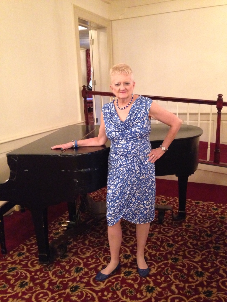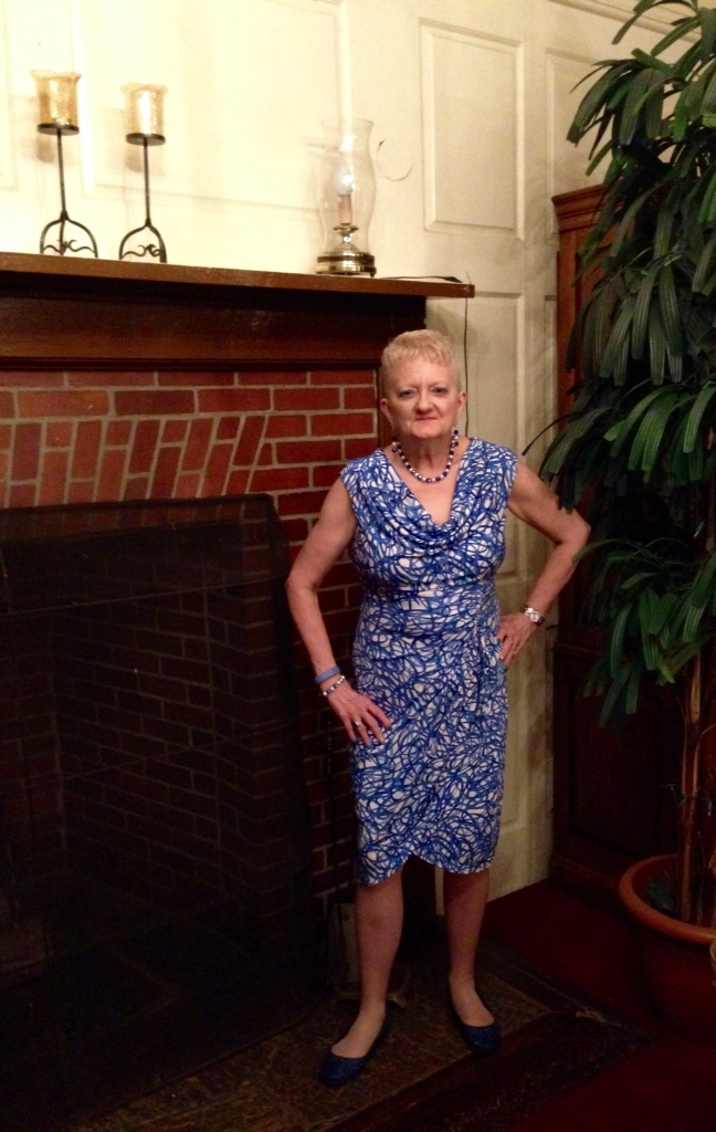 Here's another picture by a fireplace in the officer's club. I have loved this dress from the first time I saw it. Decided to call this “Swirling Skies”.