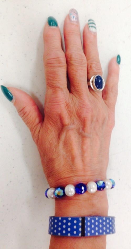 The jewelry really sets off the dress as does the FitBit combo and I love my royal blue shoes.