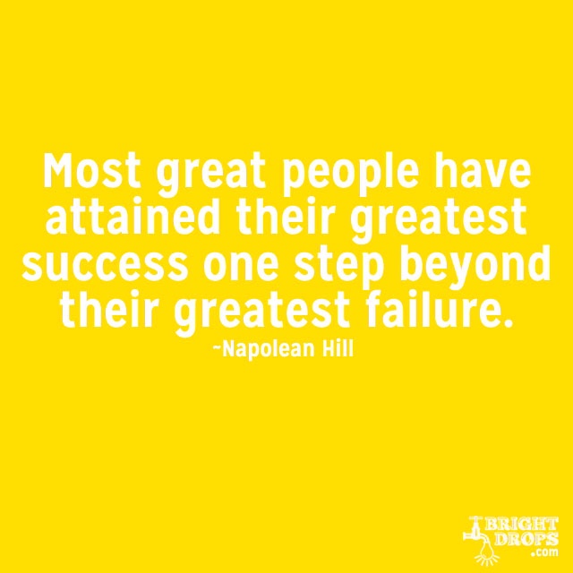 I love this. It's really something to make you stop and take pause and give you great hope. Just because you might be in a place that makes you feel like you're a failure, doesn't mean you will stay one. It is from these setbacks that we experience from time to time, that shows us that if we persevere, greater things are ahead of us. We have to remember that this journey will probably have a long and rocky road that we have to navigate our way through, and that there might be many of what others might see as failures, but what really are just a bump in the road that is going to lead us to our greatest successes.