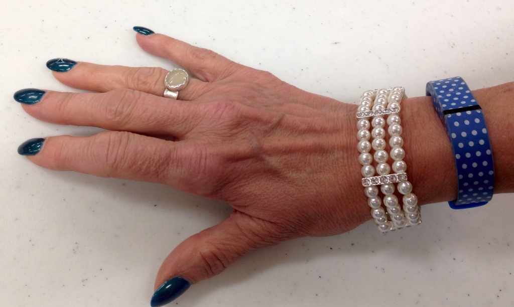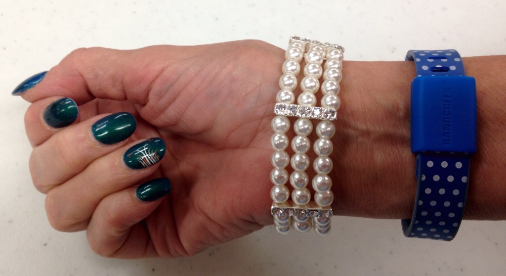 My polka dotted FitBit band and Royal Blue BandCuff complete the look along with my matching shoes, also a favorite of mine.