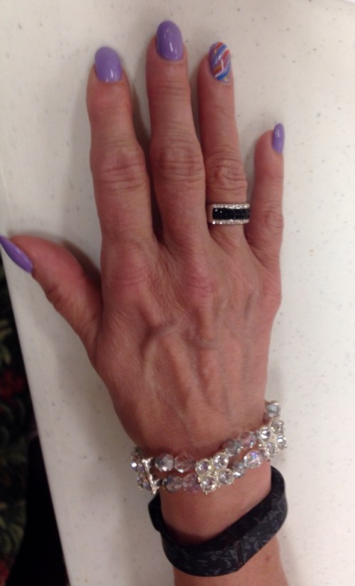 Well here we are again. Hope all my readers are doing well. Had another beautiful day here in Central New York. I love everything about today's picture. Been taking advantage of all the nice places to take outdoor pictures. This is outside the Country Music Park where we go dancing. It made a really beautiful background. The combination of the colors outside looked really cool next to the black of today's ensemble. It was just a beautiful contrast. Calling this,”Laced Up and Blinged Out.”