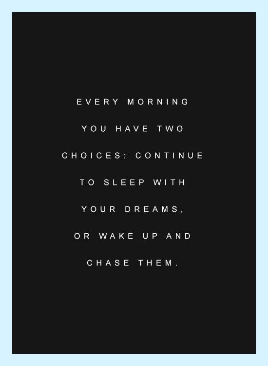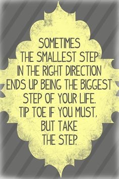 There's much to be said about the graphic above. You don't have to take big giant steps,you just have to take that one step, whatever it might be. It doesn't matter how big or small, it only matters that you take it at all. Wherever you find yourself, decide what step will move you in the right direction and take it. Put one foot in front of the other and before you know it you will be moving closer and closer to the fulfillment of your dreams. Don't just sleep with your dreams, actively chase them.