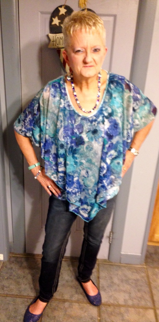 Really liking my ensemble today. I just love this blouse, everything about it: the style, the color, the material, and the beautiful floral design. It looks really nice with these skinny jeans and my royal blue flats. Funny thing about my shoes. I bought them to go with one particular outfit, not even realizing how many things I could wear them with. They are one of my favorite pair of shoes. I wear them whenever I can. They really jazz up any outfit.