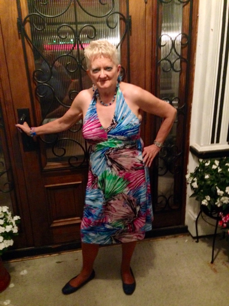 Welcome back to Carol's Corner. Hope you enjoyed my reblogging of Tiffany's story. I was dead tired and couldn't have strung two words together for a new blog entry. We're gone till Tuesday on a trip back home. My husband had a class reunion, well it was a whole bunch together which was kind of cool. Tonight we went to a local hotel that had karaoke. It was kind of interesting to watch and we did a little bit of dancing in a really small space. Had a good time though. Just got this dress before we left. Just love all the colors. Calling this, “Fireworks.”