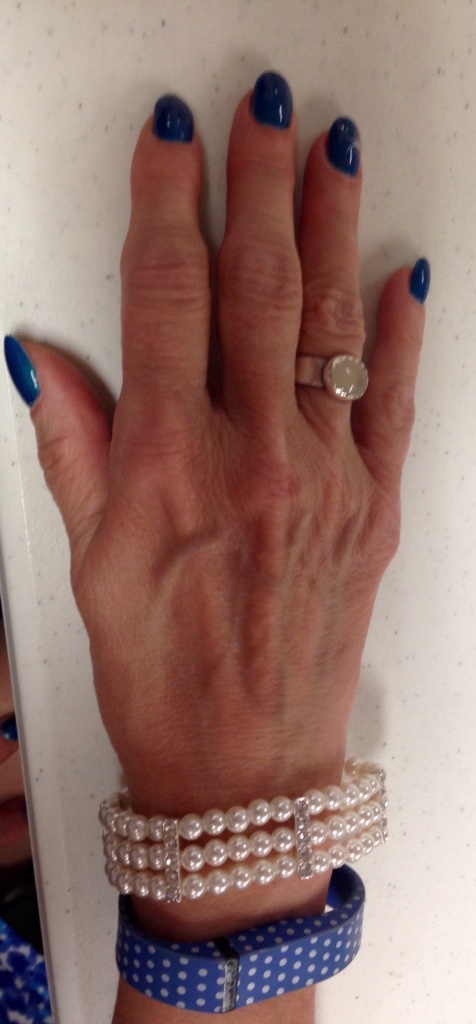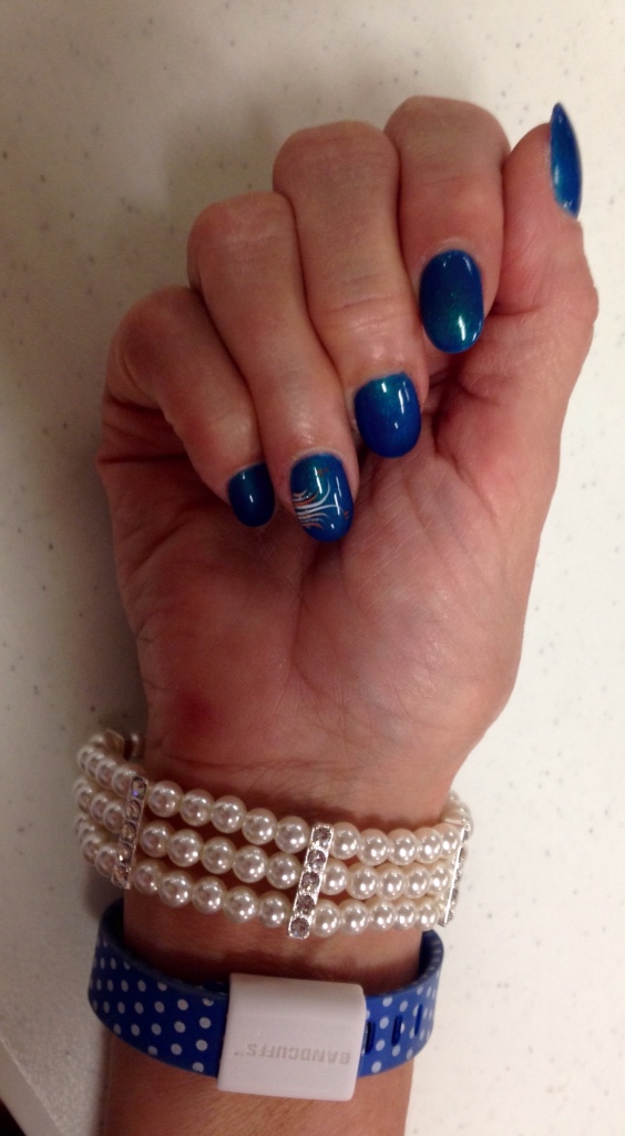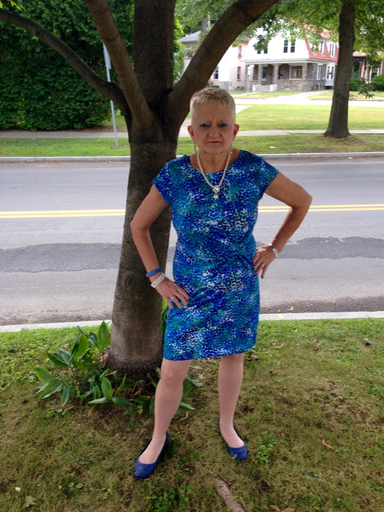 Welcome to Saturday night in Carol's Corner. I totally am in love with this entire ensemble. This is the other dress I had shortened. It just makes all the difference. The colors are just divine and of course I always love when I can wear my matching shoes. I still can't believe just how much I have been able to wear them. I just got this gorgeous necklace where I get my nails done . All the fancy pearl like jewelry really sets off the dress. Calling this,”Dancing the Blues Away.” Of course tonight was our dancing night. So thought between that and blue dress it was perfect.