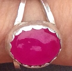 The ring is one of six that I had made by a jewelry artisan. I had to have this when I saw this color stone, as it is a very hard color to get.