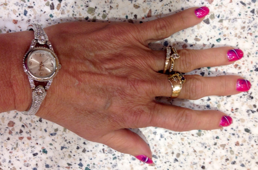 Except for my ring I decided not to go with coordinating jewelry, instead opted for what I'm calling, “Glitz and Glam; Get your sparkle on.” I've worn this top many times and you can totally change the whole vibe of an ensemble by changing your accessories. Try it and you'll see what I mean.