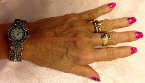 This is a new watch that I got recently and was a perfect match to the bracelet seen above. I love watches that look like a piece of jewelry. I got it for a really cheap price too, so that was even better.