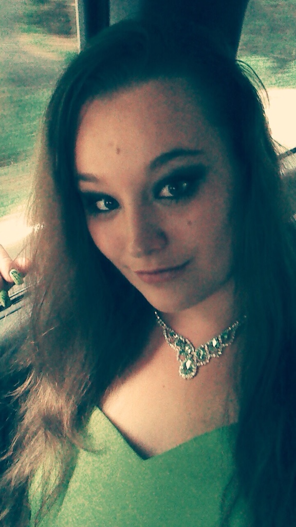 We’re almost to the final picture. Get ready to get your socks knocked off. You can’t see the earrings but this is the necklace and (earring) set we found to go with the dress; may I say totally a home run? And now for the showstopper as they say in the fashion world!