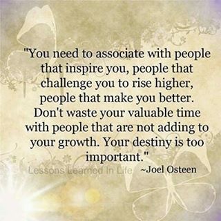 I'd like to close tonight's dicsussion with the above quote from the well known evangelist and motivational speaker, Joel Olsteen. These words will serve you well on your journey to health and wellness. Find those people that will inspire you, find those people that will challenge and motivate you to to be better than you think you are. Keep these people close and forget about those people who try to bring you down and don't want to see you succeed. They are not worth your time. You are important. Your future well being is important. You have a destiny to fulfill. Go out and fulfill it. I believe in you . God believes in you. Till next time, God Bless.