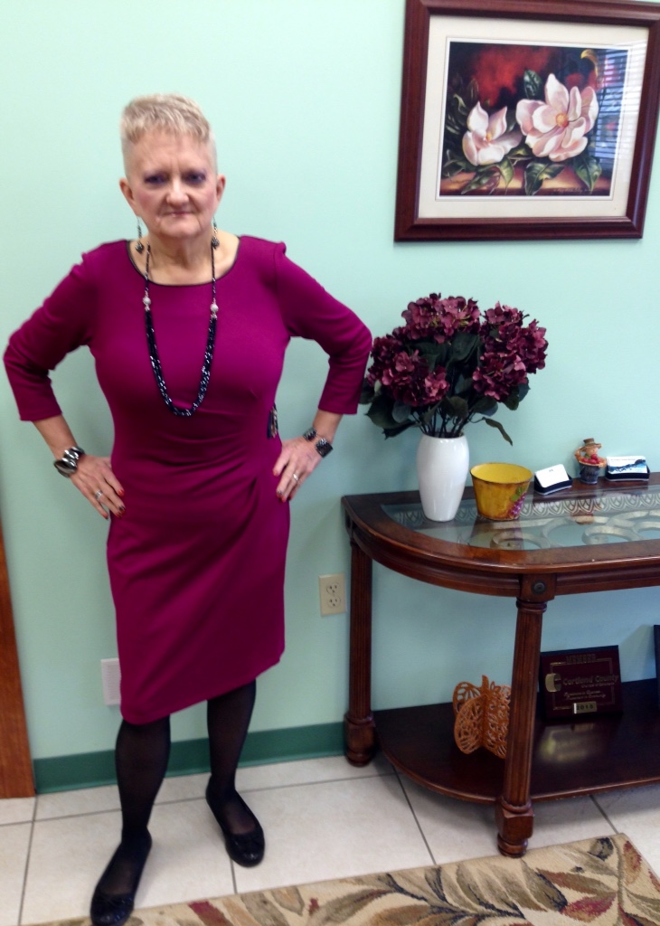 Welcome back to Carol's Corner. I'm sorry so many things keep happening that have kept me from publishing new blog posts. I really hate it when I can't put up something new for you every day. But I guess that's just how it goes sometimes. So let's get started. The ensemble in this picture is what I wore to church on Sunday and also when we traveled to my daughter's in Pa. that afternoon. I love the rich color and the black side buckle and trim. Iris Moore Welp won this one with,”Cranberry Crush.”