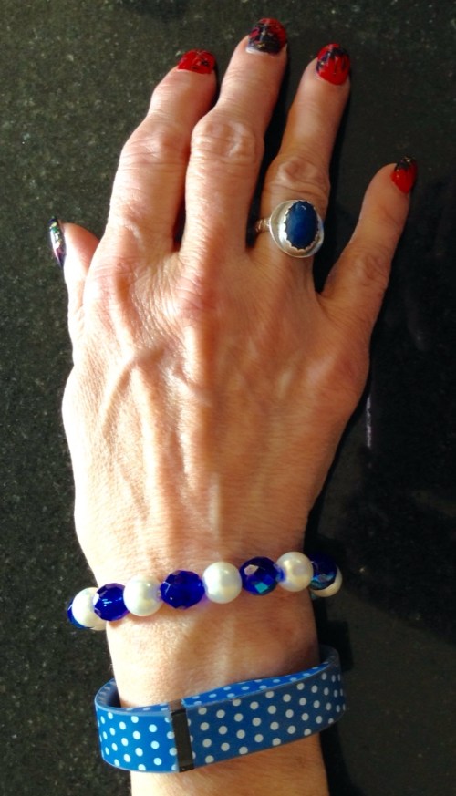Went with Royal Blue and White for my jewelry and FitBit band. Love whenever I get to wear one of my custom made rings. This one is perfect for this ensemble.