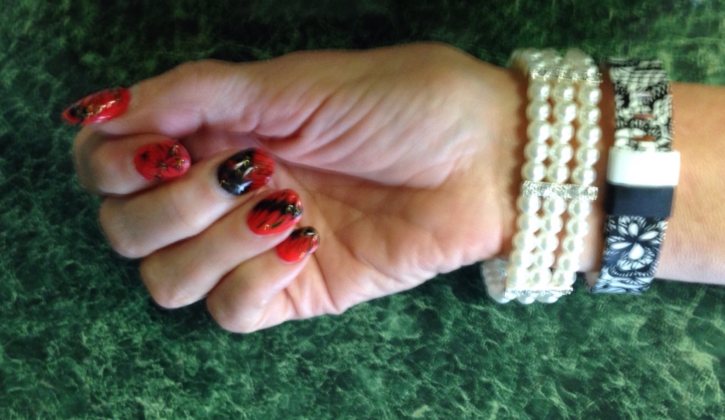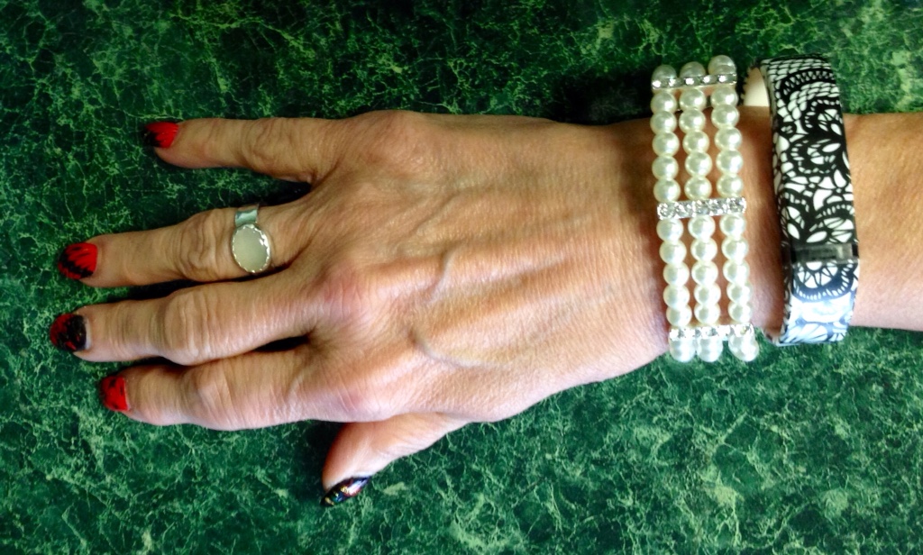 I went with all white pearl like accessories except my FitBit band, which is one of the new ones I just purchased. It's really a pretty one in black and white.