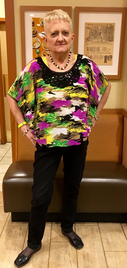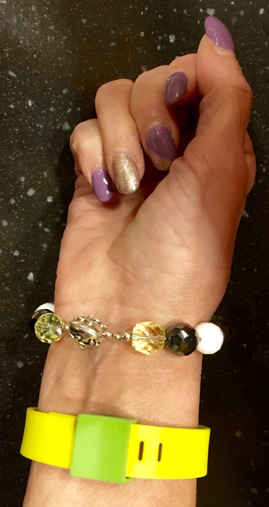 Found this set of jewelry I had made that went quite nicely with the ensemble and then this bright yellow FitBit band was perfect. I used yellow in my accessories all the way. You will note the bright yellow cami shaper underneath the top. They are a mainstay in my wardrobe. I own every color they make. Wish they'd come out with a few new shades.