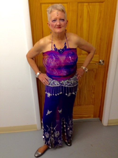 Welcome back to Carol's Corner. Sorry I couldn't post the last two days. Hope everyone had a fun and safe Halloween. This is the first time in my adult life that I actually dressed up for Halloween. This year I decided to have some fun. It coincided with our Saturday night dance so that made it even better. I think I will have to make this a new tradition from now on. It was a blast. I went as a belly dancer, but some even thought I could be a gypsy and other's a Bollywood dancer. They're all good by me. Got lot's of different picture's to show you. But first the winner of naming this ensemble is Andy Haney with, “Genie In A Bottle.”
