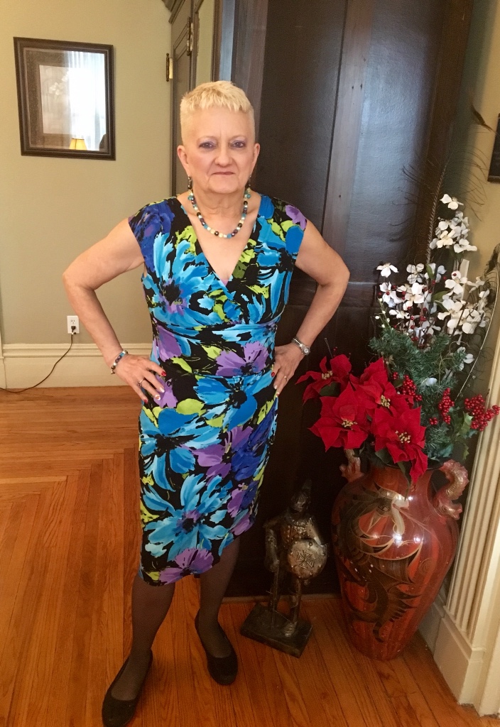 Welcome to a new day and a new edition of Carol's Corner. I think I'm finally on the mend. After not being able to workout for over two weeks the train is finally back on the track and chugging along, just as if I'd never left it. Love this picture. It was taken at a luncheon hubby and I attended on Saturday. This has always been one of my favorite dresses. The colors are everything I love. The winning name for this ensemble is “Hawaiin Christmas.