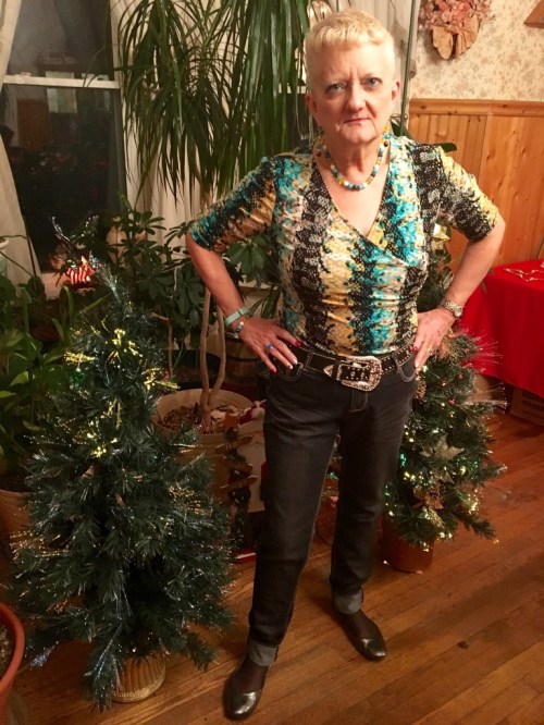 Welcome to another edition of Carol's Corner. Where has this month gone to? Can't believe Christmas is less than a week away. Really like the ensemble I wore in this picture. This is one of the first blouses I bought after losing weight. I bought two others in totally different color combos. The winner for naming this ensemble is Catherine Warner with, “Rocking All Over The World.”
