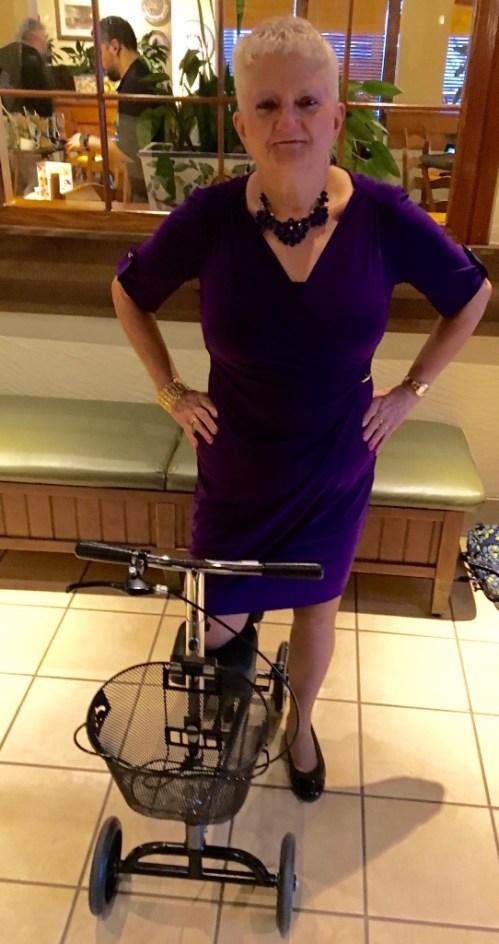 Welcome to Carol's Corner. I hope this finds you all well and that you have found the last two features to be motivating, inspiring and even educational. So first let's get my pics out of the way.The above picture was taken at The Olive Garden Saturday night on my 65th birthday celebration. As you can see my picture was taken with what I dub 'my new best friend'; my roll-about scooter. I'll have more to say on the subject later in this post. Jo Ellen Jatczak named my birthday ensemble,”Still Fabulous At 65.” I'll be talking about that later also.