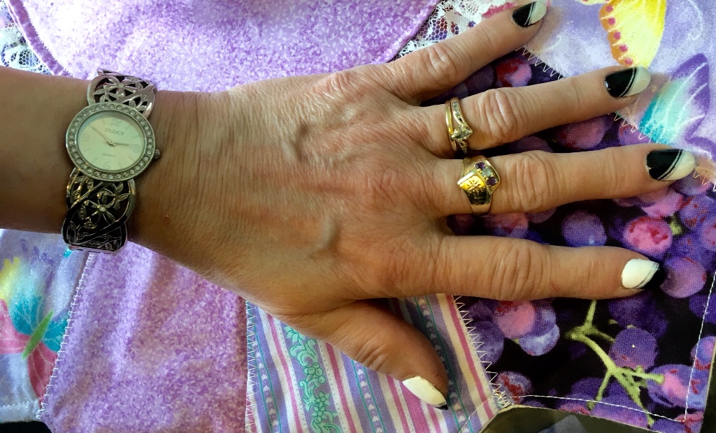 The black clasp cover just ties it all together. Oh and don't you just love my new manicure? When you compare this hand with the next shot that shows my watch, you will see they are mirror images of each other. I totally love it. My nail tech does amazing work and I give her total creative control. It's always a surprise.