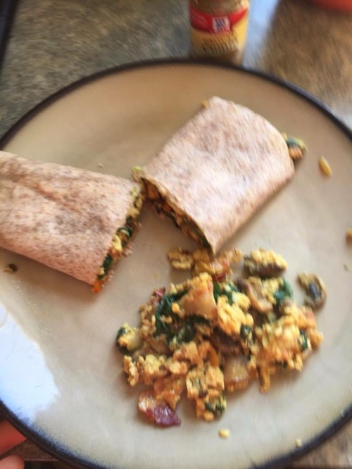 This is a Mexican breakfast burrito which is low fat, low salt and delicious.