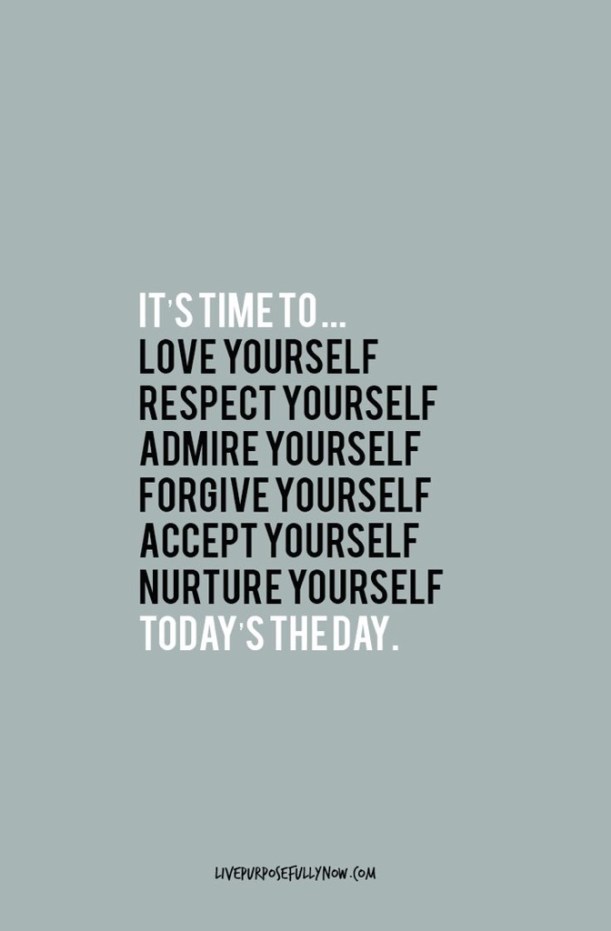 Love, love, love this!!! Is today going to be the day you start working down this list? And as you see, it starts first with loving yourself. If you start with that, many of these will naturally follow or will make it easier for you to start doing all of things listed above. Do you respect yourself? When you do, you will want to take care of your body, mind and spirit. When all three work together, you have the highest chance of success in all aspects of your life. Have you ever thought to admire yourself? Or do you think that is some sort of vanity? I think not. If you stop to try and pinpoint the traits in yourself that you most admire it will show you what your strong points are, and in turn help you all along the way,to better navigate your own unique path to better health and happiness. The next one is a biggie and one that people seem to have the hardest time with. You need to remember that we are not perfect people. It's all right to make mistakes, it's all right to struggle with our diet and exercise programs. When we find ourselves falling short in some area of our life we need to learn to forgive ourselves. We need to realize that all of it is just a part of life and a part of our journey. Forgive yourself and move on to bigger and better things. You will never be sorry that you did. Because if you don't you will just be stuck and unable to move forward. Then we come to acceptance. Accept yourself. I would say own who you are and be proud of that person, the new person you're becoming as you make your way on this journey. You are awesome, you are fierce, remember that always. Now that you've gone through the list it's time you concentrated on you. That means nurturing yourself. Do things for you that make you feel good, things that make you feel happy. Pamper yourself for a change. Do something for yourself that you've always wanted to do, but never got around to. You deserve it. It will help you to regroup and refocus on your goals.