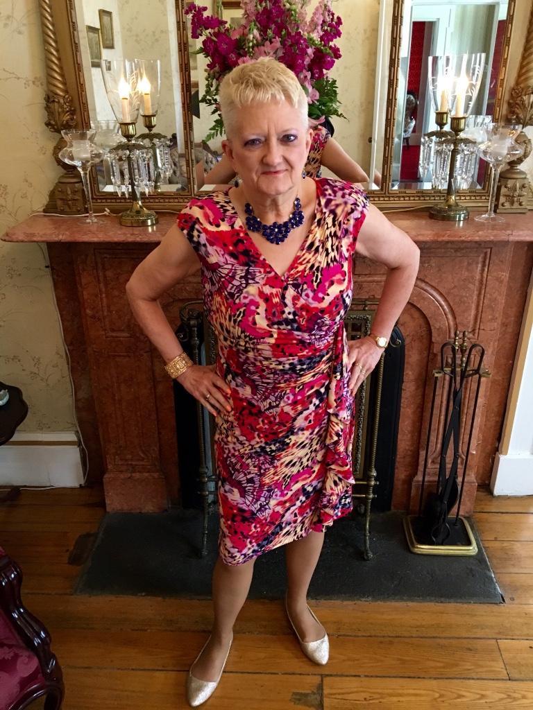 Welcome to a new edition of Carol's Corner. Finally finding some time to put something together. Sorry it took so long. Hope the wait will be worth it. So this was the ensemble I wore for my Republican Women's Club Spring Hat Luncheon and sorry I don't do hats, so the rest of the finery will have to do. I felt like a million bucks in this. Everything about this screams, “Carol's” in so many ways: from the style of the dress, to the bold color's and print, right down to the jewelry and the sparkly shoes. Angela Martinez aptly named this, “Be Always Blooming”. Love that!
