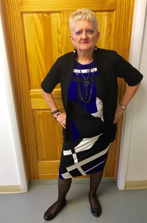 I really love how this dress looks. I consider this one totally sexy while being fully covered. Jo Ellen Jatczak dubbed this one,”Sophisticated Lady”. I'm also going to show you a picture with one of the sweaters I purchased recently. It's great for the spring and summer season as it's is short sleeved. Great when you just need a little something.