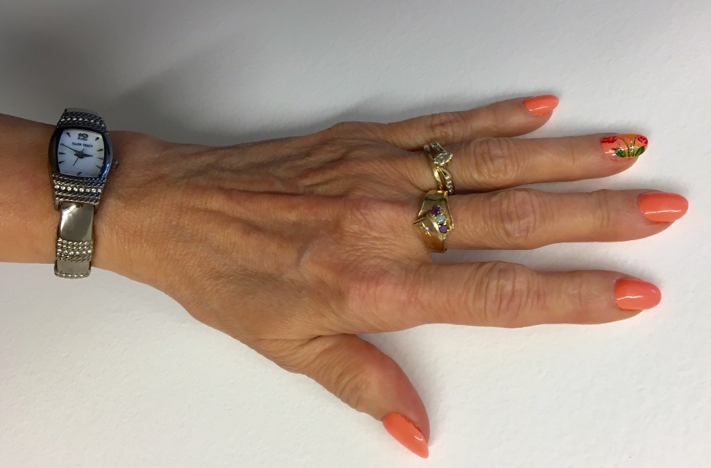 The bracelet and earrings totally coordinate with the color's in the dress as does my lapis ring.