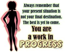 Always remember what the above graphic and visual is trying to show you. If you're struggling, try to remember that where you are presently, is not going to be where you're going to end up. And even when we reach what we think is our “Final Destination“, we really are always in my mind,” a work in progress“. Embrace the journey and remember that the best is yet to come. Just keep moving forward.