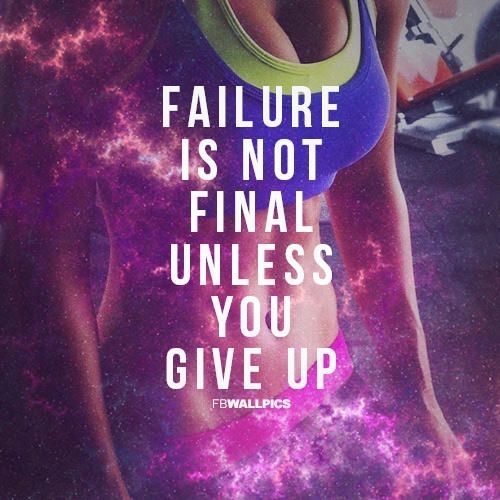 We all stumble and fall,we all make mistakes at some point in our journey on the road to health and fitness. We wouldn't be human if we didn't. When you do, get back up and continue on. You weren't meant to fail, you were meant to succeed. Take the word “Failure” right out of your vocabulary. Stand up when you fall and continue on the path you know you were meant to be. There is greatness inside each and every one of us. Look deep inside yourself and find it, it's there if you just search for it.